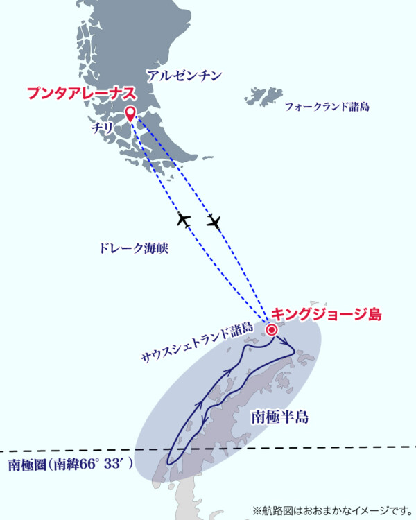 南極への遠征クルーズは、南米大陸に向かって伸びる南極大陸の最北端である南極半島を中心に、フォークランド諸島や野生動物の楽園サウスジョージア島を含むクルーズもあります。