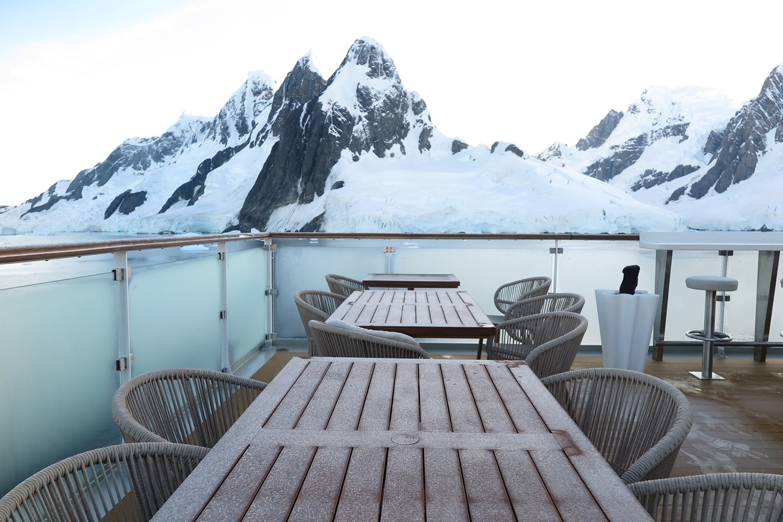 船酔い止め薬はよく効きました、ドレーク海峡は好天で穏やかな太平洋程度の揺れでしたが。 気温は1~5℃でしたので、そのレベルの防寒着で足りました。 ネットは500MBまで無料、追加は10GBでUSD50でした。Youtubeなども見られるスピードです。外部と全く連絡できないのではと思っていましたが、その心配はありませんでした。