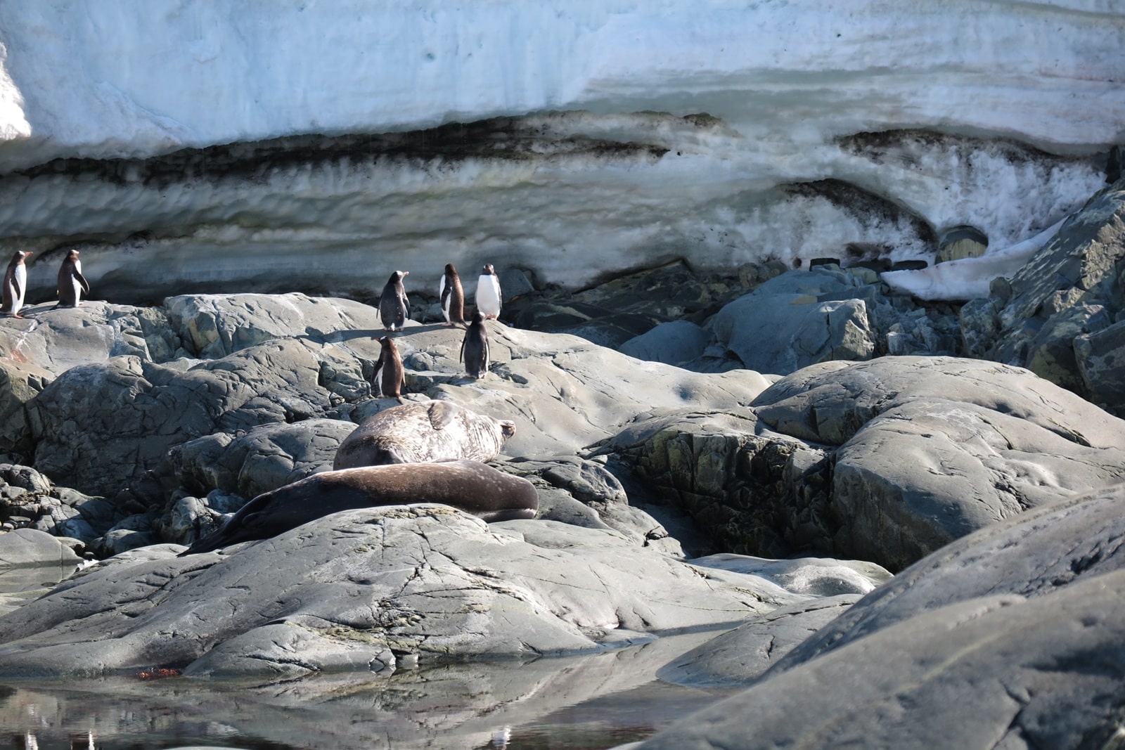 3月ではペンギンのヒナが大きく成長し親鳥と見分けがつかず、ガイドに教えてもらいました。ヒナを見るなら1月頃が良さそうです。 動物撮影には400mm程度の望遠レンズが理想的ですが、なくてもスマホの望遠レンズがあると良いと思います。 水中撮影ができるカメラまたは防水カメラケースがあるともっと楽しめます。船内で参加者撮影ビデオが紹介され、ペンギンが泳ぎ回っているのがばっちり写っていました。