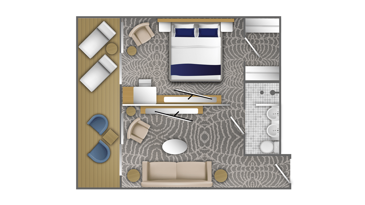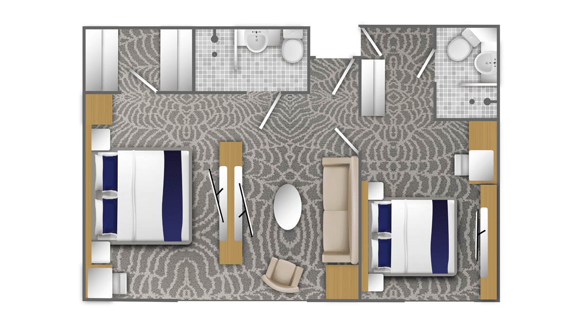 客室のレイアウト、図、寸法はあくまでもイメージであり、実際の客室を忠実に再現したものではありません。実際のレイアウトやサイズは異なる場合があります。