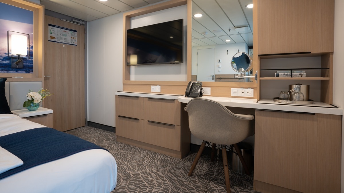 私たちは世界の辺境の地をクルーズしていることを心に留めておいてください。アクセス可能な場所では、追加料金にてインターネット接続が可能です。携帯電話の受信は、航路上の一部の地域で可能な場合があります。詳しくは携帯電話会社にお問い合わせください。料金は客室内のインフォメーション・フォルダーに記載されています。データローミング機能がオフになっていることをご確認ください。